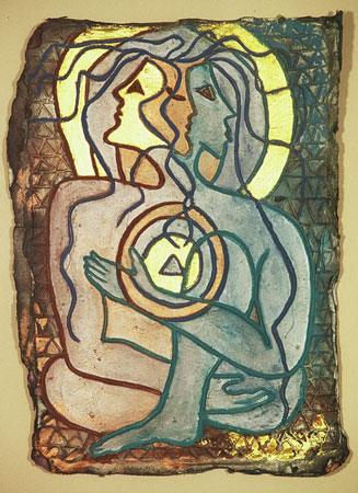 Cast hand made paper, acrylic, gold leaf, dyes
