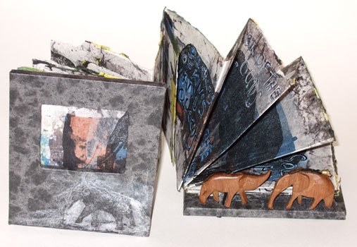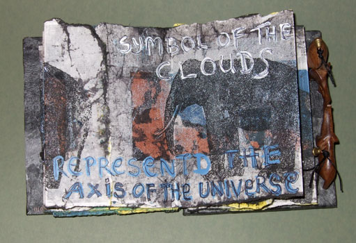 Hand made paper, batik treatment, hand printed and written text