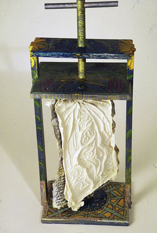 "PISS OFF I'm trying to work" self portrait of the artist - cast hand made paper