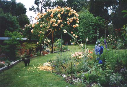 This weeping rose is covered with flowers for much of the year - even through the winter.
