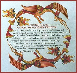 Red Dragons by Catherine Whiteman (Tiggy) Gouache, sumi, gold leaf on watercolour paper Original size 500mm x 500mm Tiggy has her own website and can be contacted by email next Dragons' Cave Cecilia's Home Page