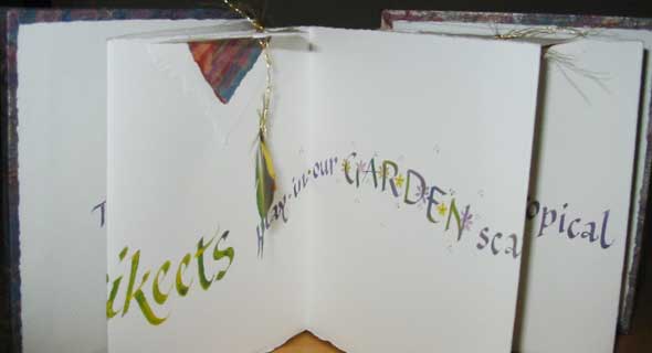 The text is about the beautiful Rainbow Lorikeets in our garden
