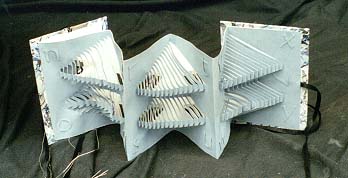 Materials: Archival mount board, marbled papers, Canson Mi-Teintes, silver thread, ribbon