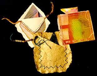 Materials: Pasted papers, handmade and marbled papers (by artist - all decorated papers used in these books were created by the artist), beads, embroidery thread, crinkled bronze paper next