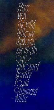 'Fierce' Pastel on black Canson Mi-Teintes, white gouache, Mitchell Roundhand No. 6 next Karen's Gallery Entrance Calligraphy Galleries Cecilia's Home Page