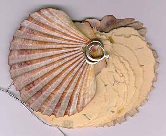 (one remaining of a pair!), hand-made Japanese paper with petal inclusions, silver cord