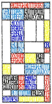 Letters "This piece is a kind of hommage to Piet Mondrian. I've always liked his work - great use of colour - so thought I'd try to interpret it calligraphically." next Michalina's Gallery Entrance Calligraphy Galleries Cecilia's Home Page