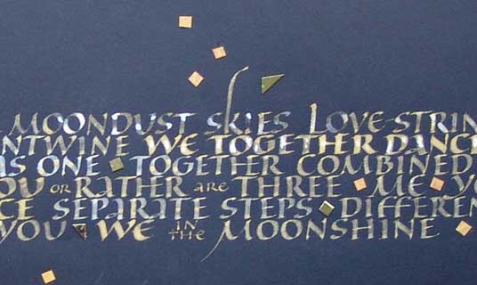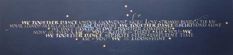 Gouache and collage on Canson Mi-Teintes. Traditional calligraphy excecuted with steel nibs. Words by the artist, written in the wee small hours after many late night feedings