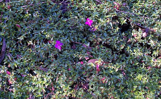 This creeping Lassiandra is gradually covering the whole bank to the left of the house. It will not forge its way through stronger plants (like violets) so I have to now and again spend a few hours sitting on the bank weeding a little more space for it to spread into.