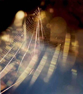 "No, In the Web was not frozen. It was taken with the lens in a long line of webs in a corner of our deck shade louvers. At the time that support and the louvers formed a tunnel of webs almost directly toward the setting sun.