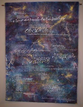 The Fabric of My Dreams Anne Binder, South Bend, Indiana. Media: Pasted canvas using acrylics, watercolors, gouache, inks, mica powders, soft and oil pastels.