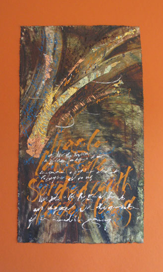 43 x 67cm Paste paper on canvas, gouache, ink and foils - own words as text 1st Prize Experimental Calligraphy, Royal Melbourne Show 2006