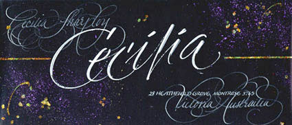 Canson Paper. Dr Martins Bleedproof White. Variegated Leaf. Spattered with gouache. Large lettering - drawlet nib, small lettering - vintage pointed nibs