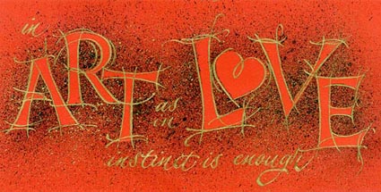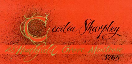 Sumi Ink, Sakura Gold Tempera on Red Card