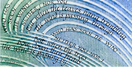 Ink and gouache on paste paper background. Poem by Christina Rossetti