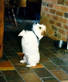 If the sad ears don't do the trick, this one almost never fails - especially if it's accompanied by a couple of dainty pirouettes on my back legs. next Cecilia's Stories Cecilia's Home Page